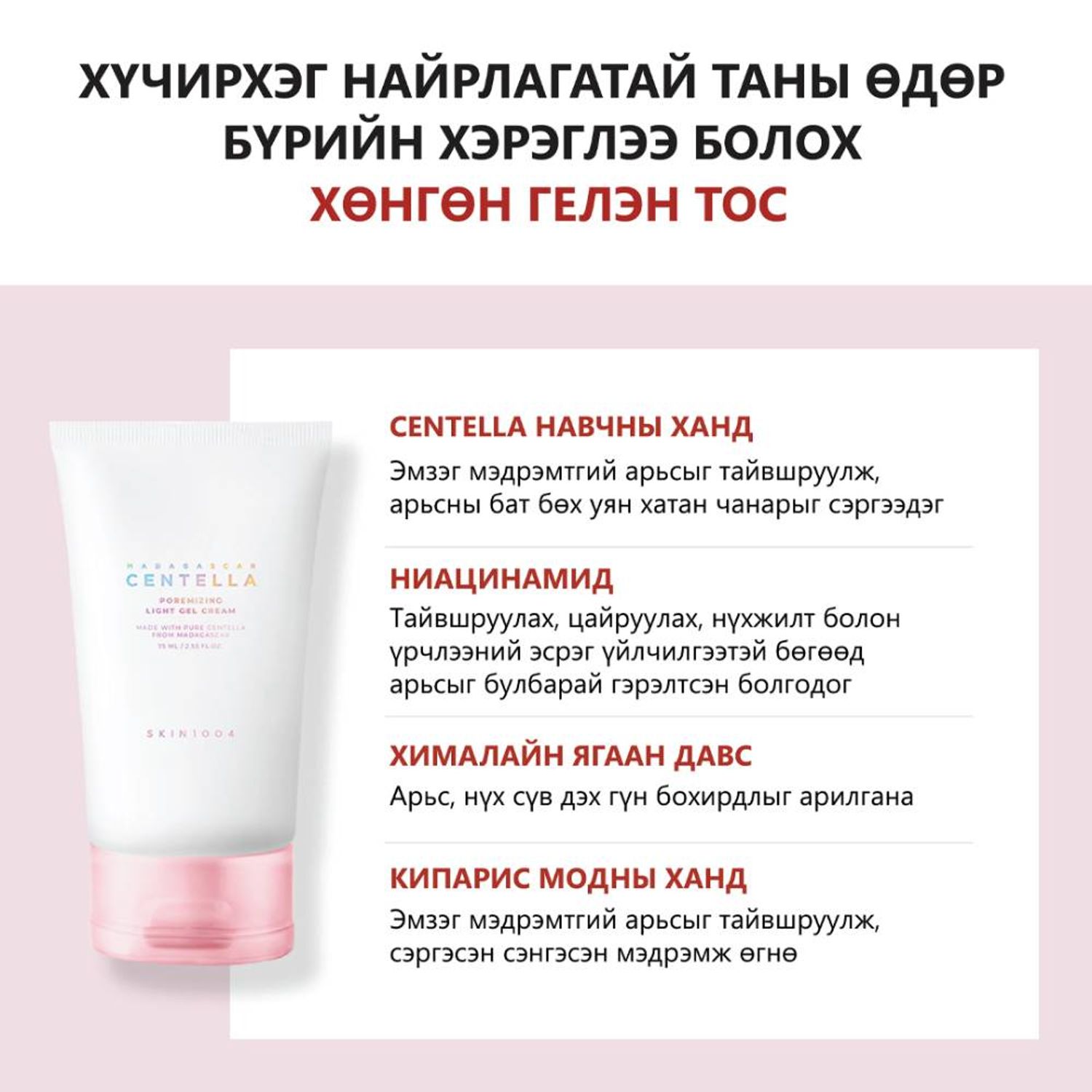 Арьс арчилгааны хамгийн сүүлийн шатанд нимгэн, жигд түрхэж хэрэглэнэ. Бүтээгдэхүүний үйлчилгээг арьсанд түгжих зорилгоор зөөлөн массажлаарай.
