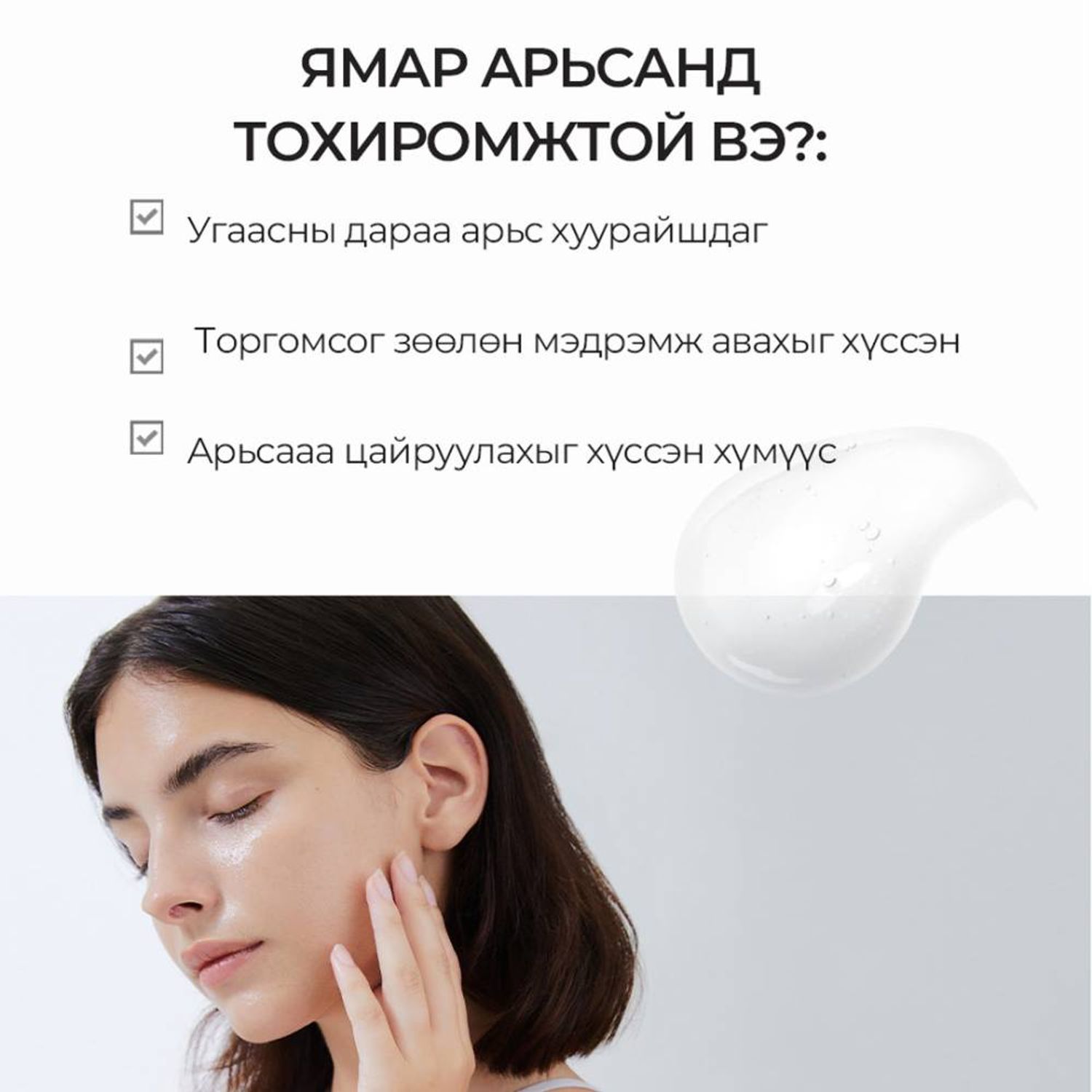 Арьс арчилгааны хамгийн сүүлийн шатанд нимгэн, жигд түрхэж хэрэглэнэ. Бүтээгдэхүүний үйлчилгээг арьсанд түгжих зорилгоор зөөлөн массажлаарай.