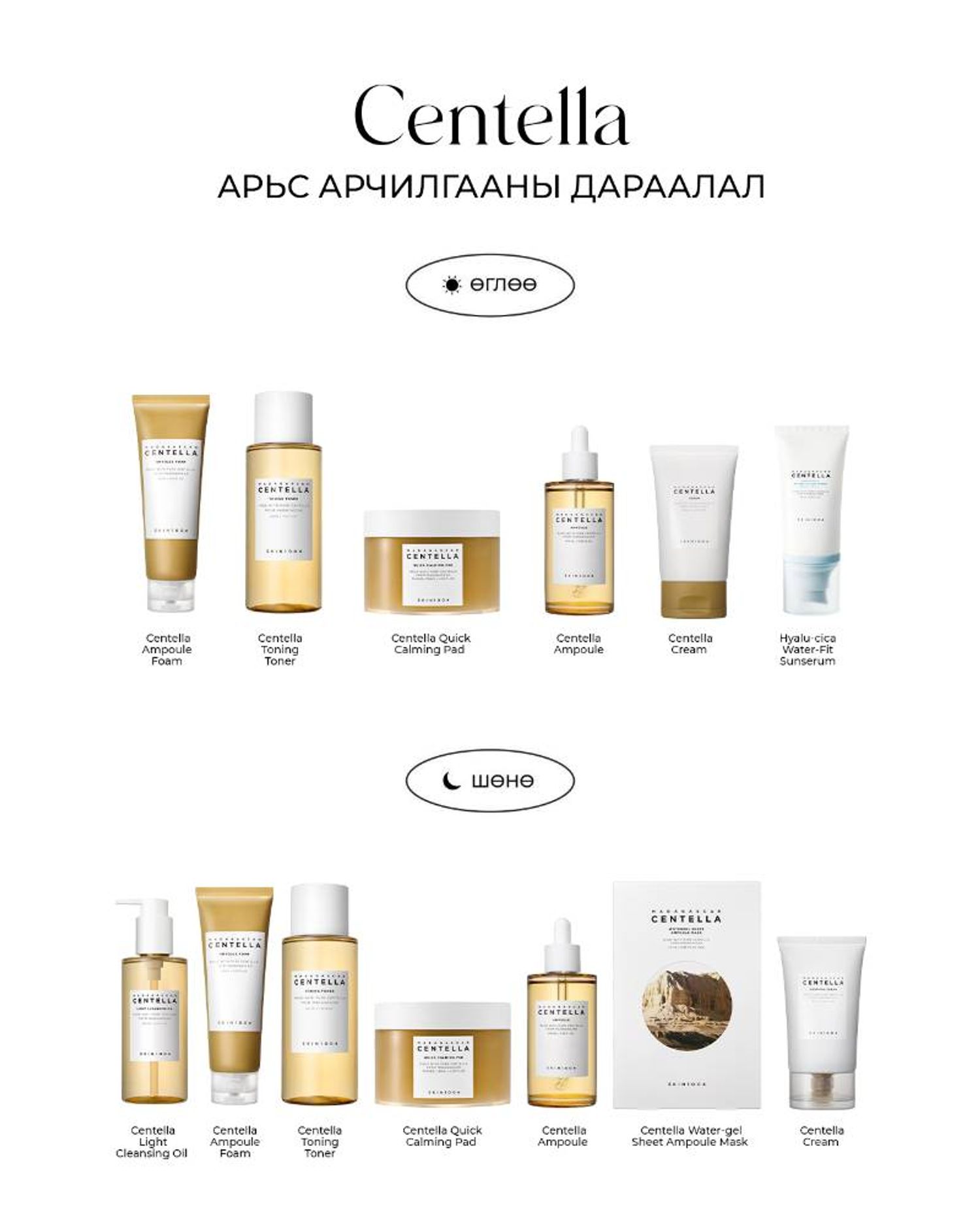 Тайлбар: Сайн арьс арчилгааны бүтээгдэхүүн нь өндөр чанартай орц найрлагаас эхэлдэг гэдэгт итгэдэг тул SKIN1004 нь Мадагаскарын хамгийн цэвэр сортын центеллаг бүтээгдэхүүн болгон хүргэдэг. Центелла цуврал нь эмзэг мэдрэмтгий арьсанд ч тохирох байгалийн органик найрлага бүхий батга гарамтгай арьсанд батгыг эмчлэх, арьсны балансыг тэнцвэржүүлэх, тайвшруулах, гүн чийгшил өгөх, эмзэгшил бууруулах, нөхөн төлжүүлэх, арьсны хамгаалалтын гадаргууг дэмжих гол үйлчилгээтэй.