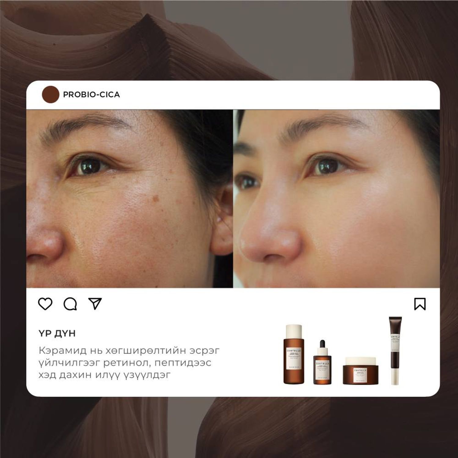 ☘️ТАЙЛБАР: Bakuchiol нь байгалийн гаралтай цэвэр ретинол юм. Иймд хөгшрилтийн эсрэг байгалын гаралтай ХАМГИЙН САЙН ОРЦ ЮМ. Керамид нь арьсыг нөхөн төлжүүлэх хөгширөлтийн эсрэг үйлчилгээг коллаген, пептидээс хэд дахин үзүүлдэг бөгөөд арьс чийгшилээ удаан барихад тусална. Исгэж гаргаж авсан АМЬД ЦЕНТЕЛЛА PROBIO- CICA нь арьсанд ашигтай бактер болох пребиотикийг агуулсан бөгөөд арьсан дор эрүүл бөгөөд тэнцвэрт орчныг бий болгодог